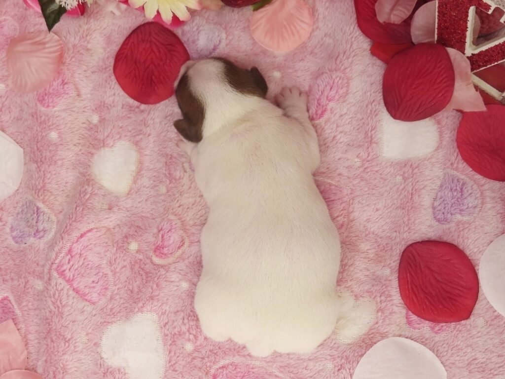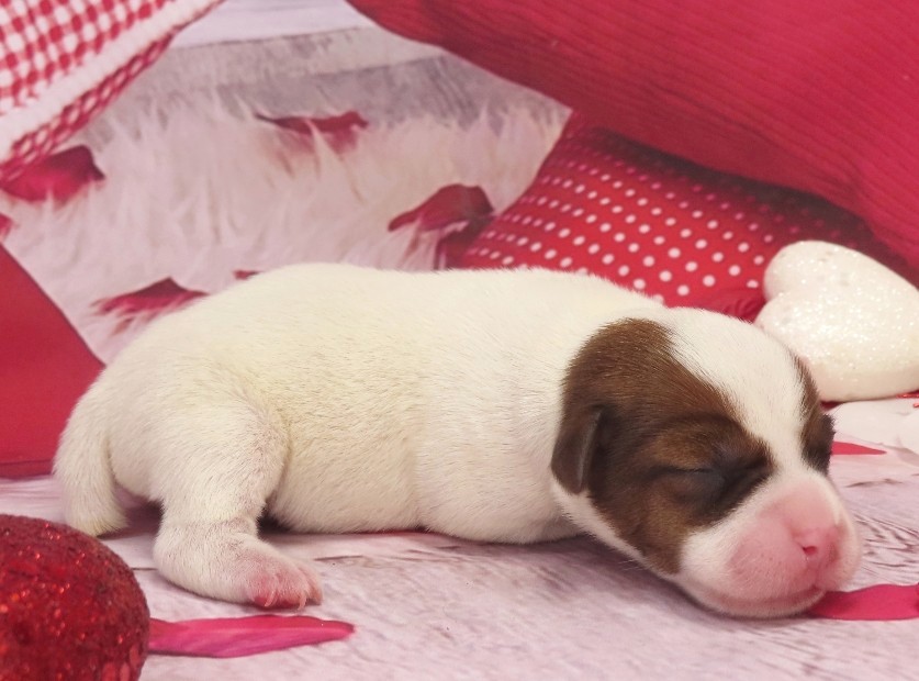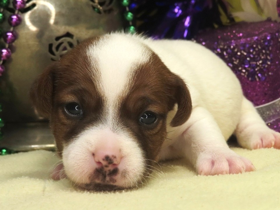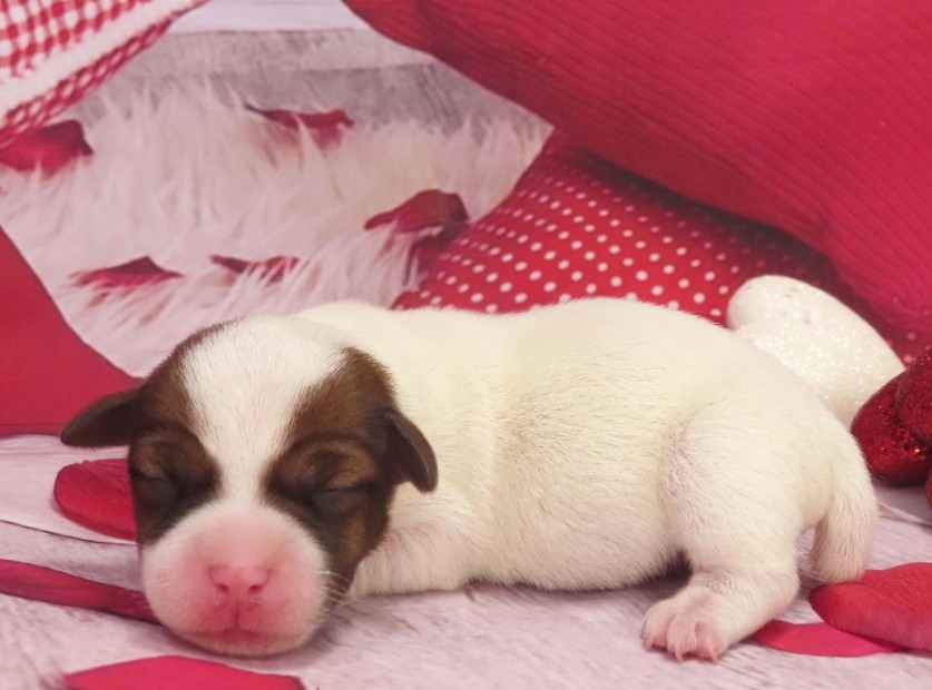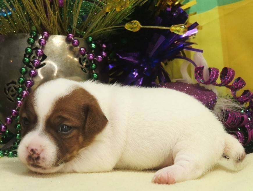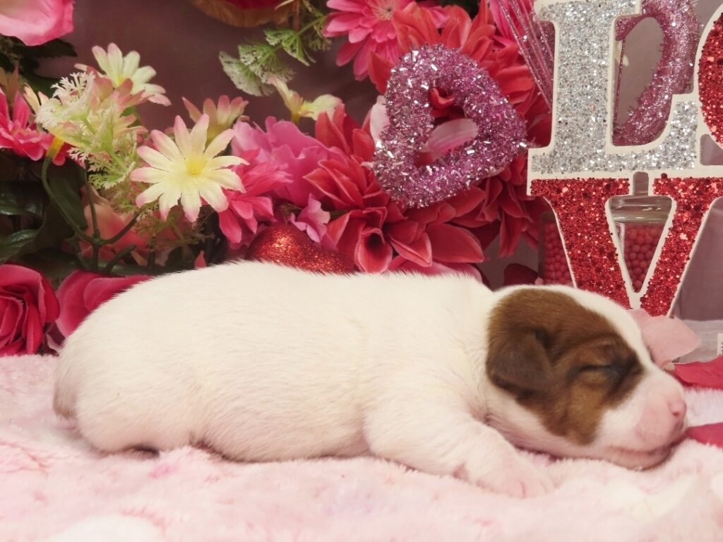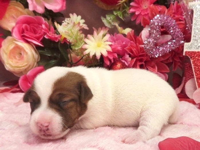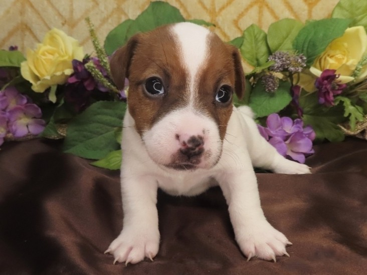 Ella Now “Sadie Lou” – Female Smooth Coat Jack Russell Terrier Puppy – Woof!! I’m Sold to Sarah!! / Elaina x Louie, Female puppies / By admin 4 WK: 3.5 WK: 3 WK: 2 WK: 1 WK: