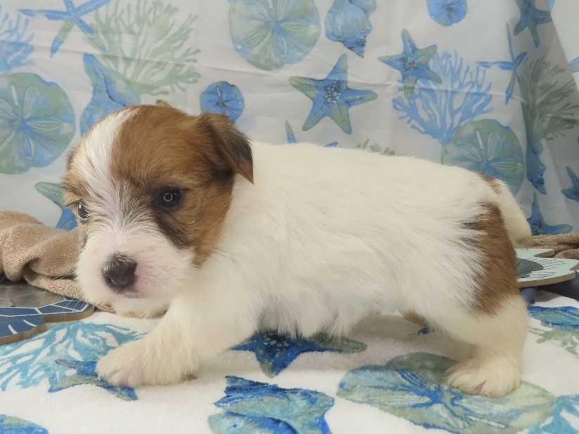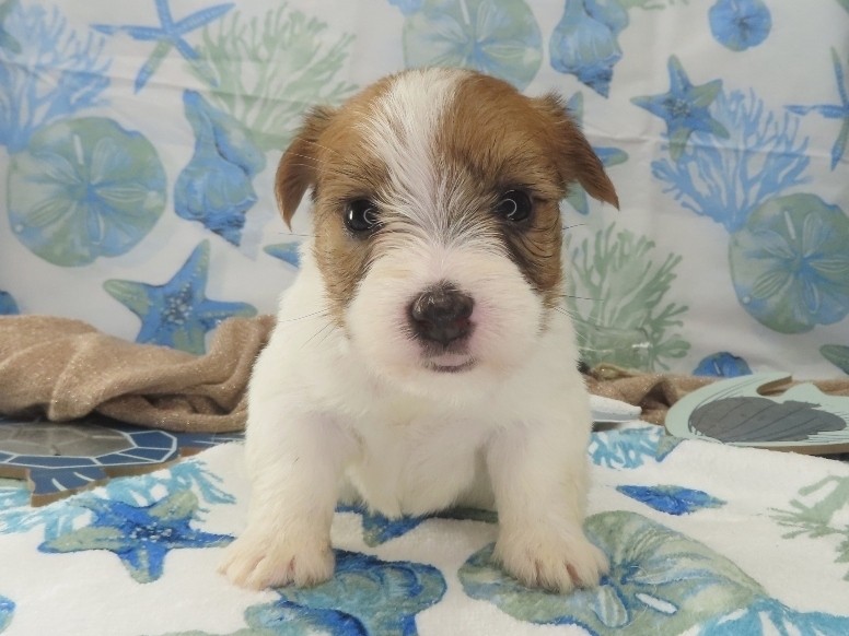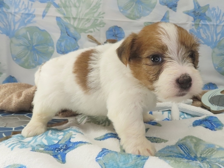 Penelope – Female Rough Coat Jack Russell Terrier Puppy – Woof!! I’m Sold to Riley!! / Female puppies, Twinkle x Presley / By admin 5 WK: 4 WK: 3 WK: 2 WK: 1 WK: